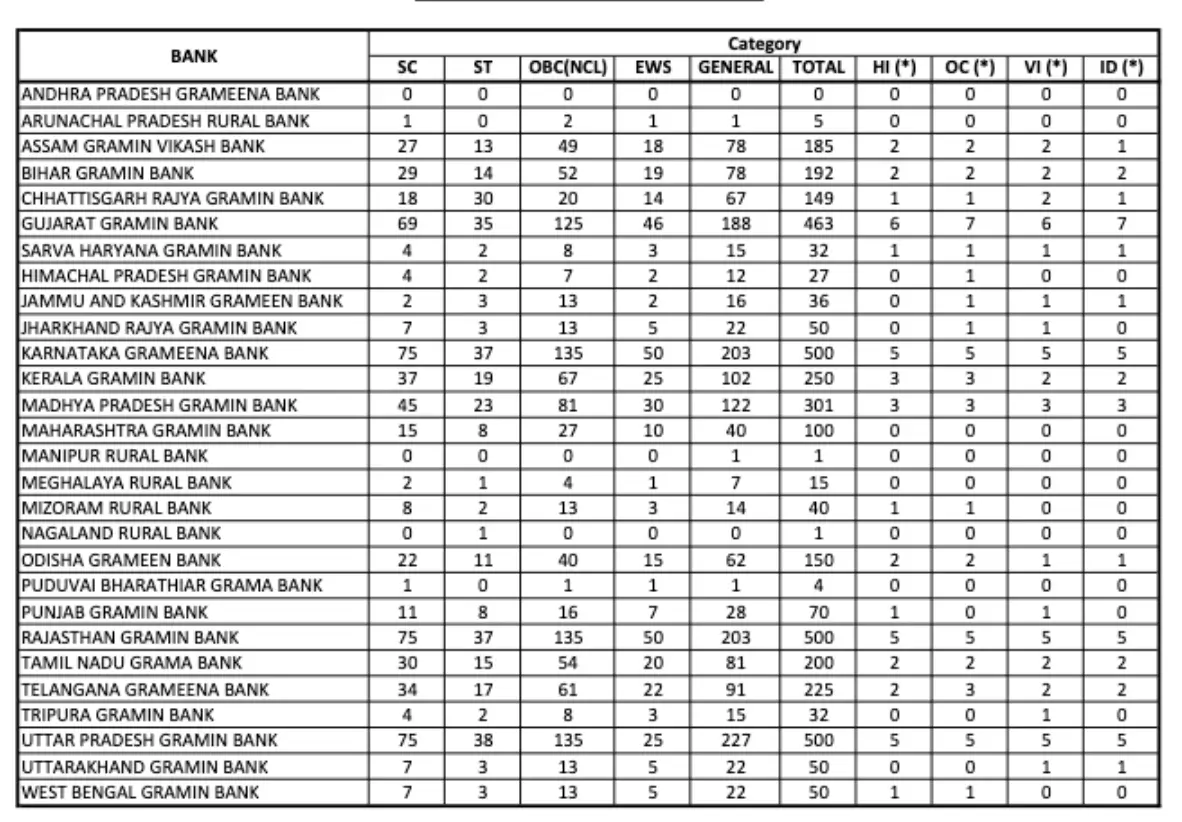 The final state-wise vacancy distribution has been released along with the results, reflecting the current requirement of various regional rural banks across India.